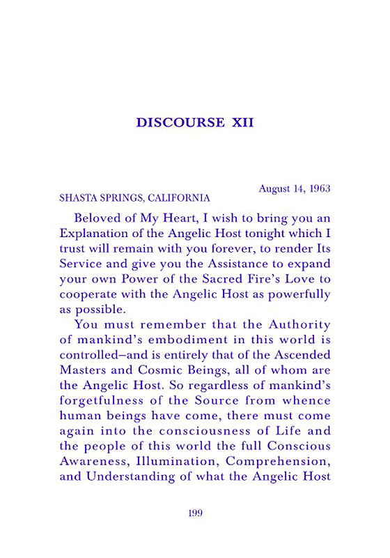 Beloved of My Heart, I wish to bring you an Explanation of the Angelic Host tonight which I trust will remain with you forever, to render Its Service and give you the Assistance to expand your own Power of the Sacred Fire's Love to cooperate with the Angelic Host as powerfully as possible. ...