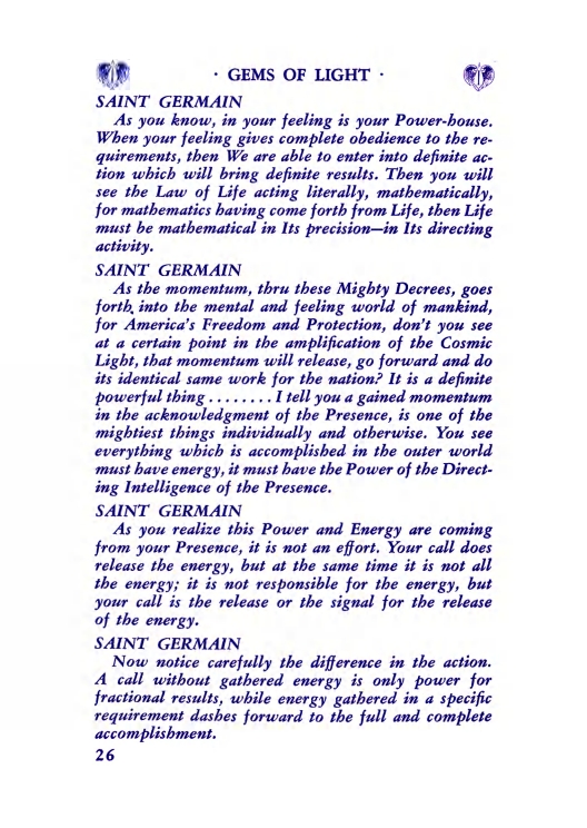 As you know, in your feeling is your Power-house. When your feeling gives complete obedience to the requirements, then We are able to enter into definite action which will bring definite results. Then you will see the Law of Life acting literally, mathematically, for mathematics having come forth from Life...About the Edition