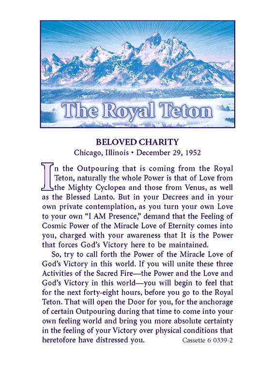 The "Voice of the I AM" monthly Magazine is the Outpouring of the Love, Light, and Illumination from the Beloved Ascended Masters for the enlightenment of all mankind-the Ascended Masters' Instruction on the Fiery Christ Truth of the "Beloved Mighty I AM Presence." The Ascended Masters' Instruction on the Great Laws of Life was first brought forth by the Ascended Master Saint Germain, through His Accredited Messengers, Mr and Mrs GW Ballard. In the early 1930s the Ballards established Saint Germain Foundation and Saint Germain Press, currently a worldwide organization with hundreds of "I AM" Temples and Sanctuaries throughout the world. The "I AM" Activity of Saint Germain Foundation presents this Original Ascended Master Instruction in its pure, unadulterated form, free from human interpretation, in The Voice of the "I AM" monthly Magazine, in the Books of the Saint Germain Series, and in other material released by Saint Germain Foundation and distributed through Saint Germain Press.Associated Items