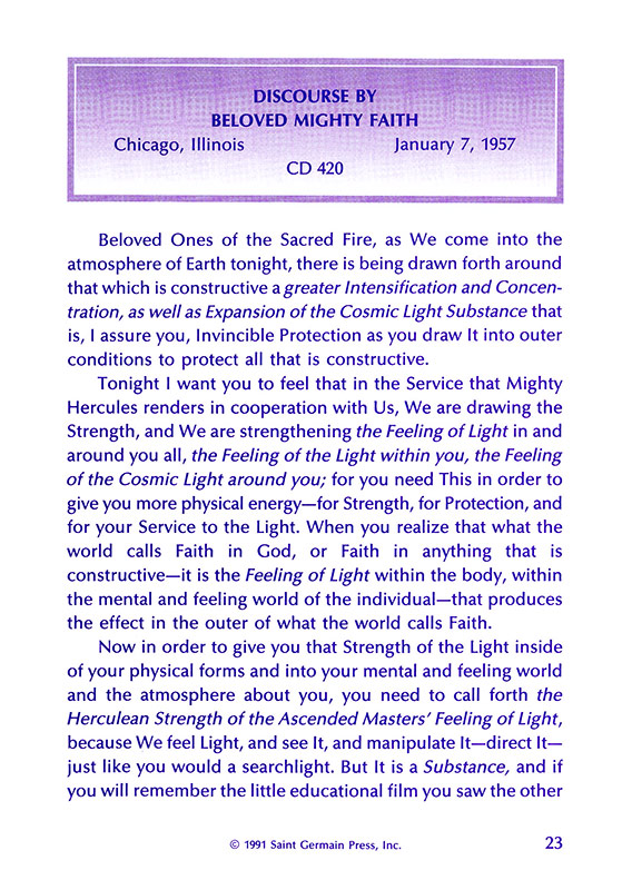 Poem - "I AM" the Flame of Gratitude; Discourse by Faith; Discourse by Hope; Discourse by Charity; "I AM" Decrees.