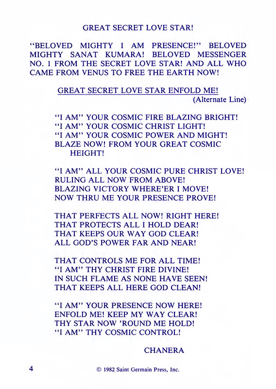 Dedication to Beloved Saint Germain; Poem - Great Secret Love Star!; Discourse by Germain; Discourse by Messenger No. 1; "I AM" Decrees; Excerpts on the Secret Love Star - Question and Answer; Poem - On Christmas Morn.Cover: The Violet Flaming ArmorAbout the Edition