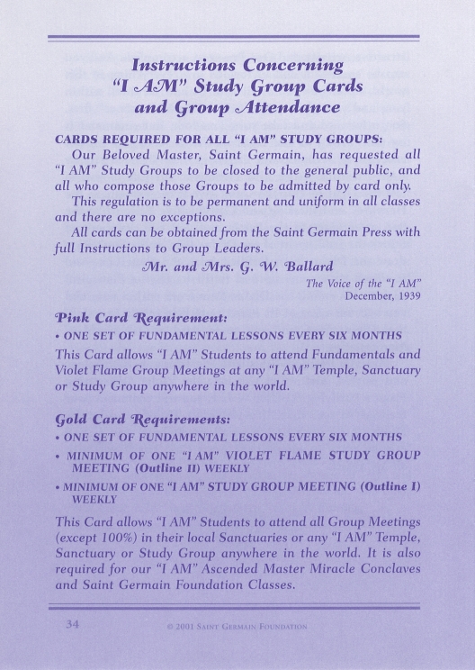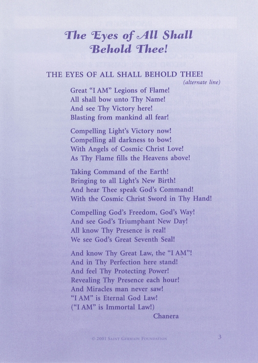Poem - The Eyes of All Shall Behold Thee!; Discourse by Saint Germain; Discourse by Faith; "I AM" Study Group Cards - Card, Group Attendance Instructions; "I AM" Decrees - Saint Germain.About the Edition