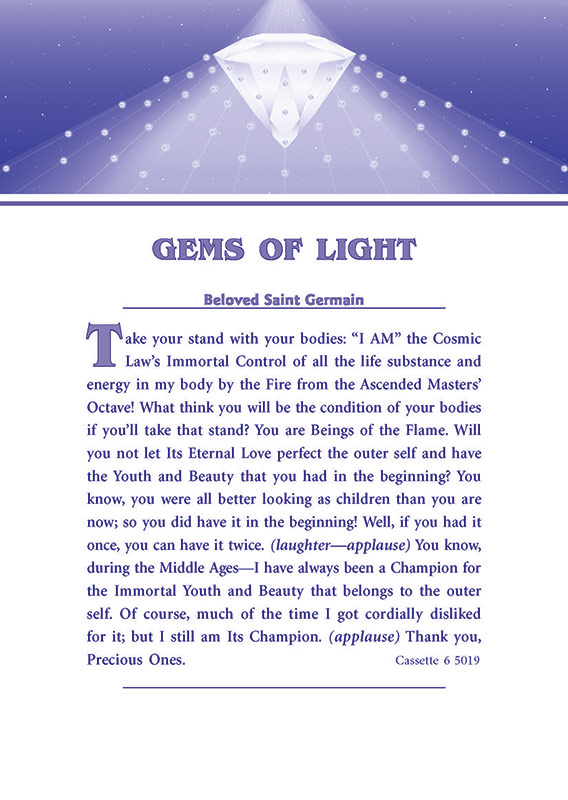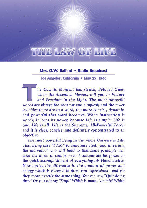 The "Voice of the I AM" monthly Magazine is the Outpouring of the Love, Light, and Illumination from the Beloved Ascended Masters for the enlightenment of all mankind-the Ascended Masters' Instruction on the Fiery Christ Truth of the "Beloved Mighty I AM Presence." The Ascended Masters' Instruction on the Great Laws of Life was first brought forth by the Ascended Master Saint Germain, through His Accredited Messengers, Mr and Mrs GW Ballard. In the early 1930s the Ballards established Saint Germain Foundation and Saint Germain Press, currently a worldwide organization with hundreds of "I AM" Temples and Sanctuaries throughout the world. The "I AM" Activity of Saint Germain Foundation presents this Original Ascended Master Instruction in its pure, unadulterated form, free from human interpretation, in The Voice of the "I AM" monthly Magazine, in the Books of the Saint Germain Series, and in other material released by Saint Germain Foundation and distributed through Saint Germain Press.Associated Items