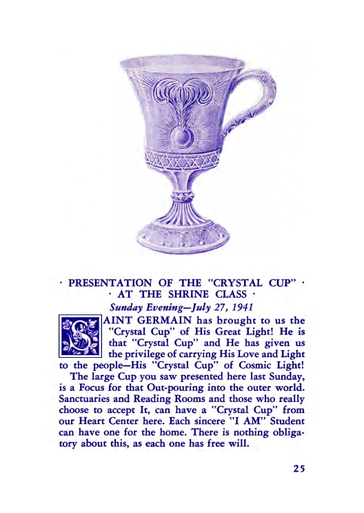 Poem - Great Victory's Shield; Discourse by Sanat Kumara; "I AM" Study Groups; Young America; Presentation of the Crystal Cup; Gems of Light; Chart Talk.