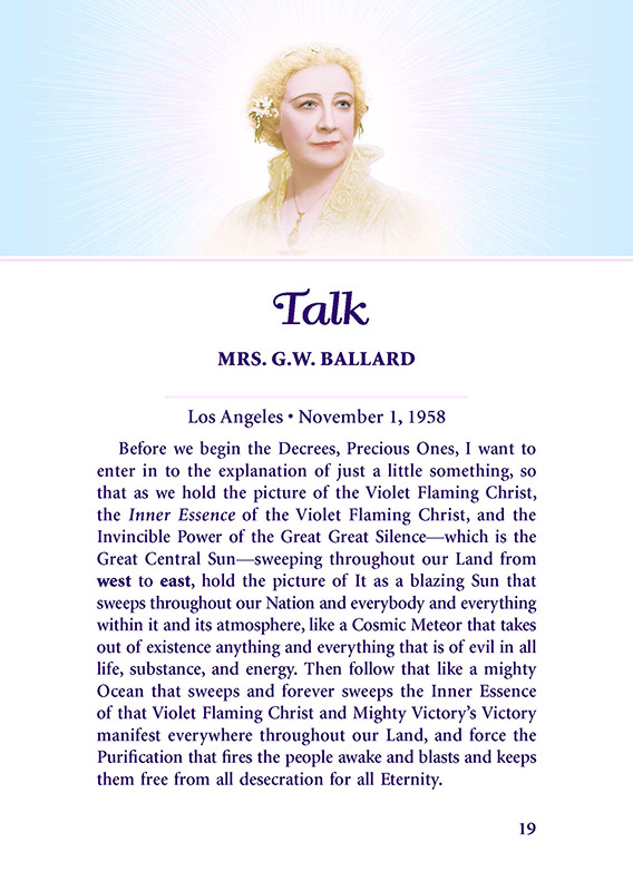 Poem - Thou Unfed Flame!; Discourse by Archangel Michael; The New Year - Victory; Talk by Mrs GW Ballard - The Inner Essence; Discourse by Lord Maitreya; The Unfed Flame - Godfre; "I AM" Decrees.2022: Dedicated to the Unfed FlameAbout the Edition