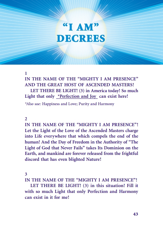 IN THE NAME OF THE "MIGHTY I AM PRESENCE" AND THE GREAT HOST OF ASCENDED… More