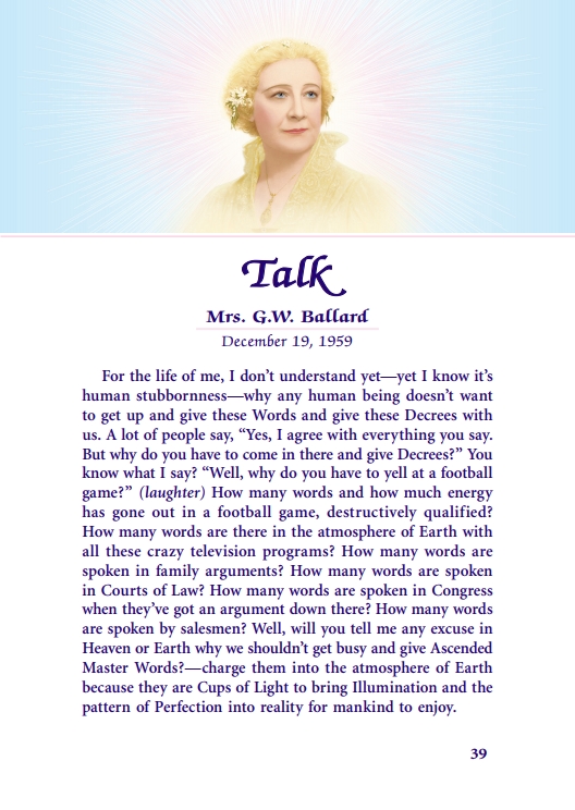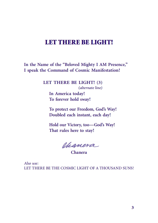 Poem - Let There Be Light!; Discourse by Godfre; Visualization - Cyclopea; Talk by Mrs GW Ballard - Give Ascended Master Words, Decrees; Light; "I AM" Decrees.2023: Dedicated to the Cosmic Victory of the Cosmic Light!About the Edition