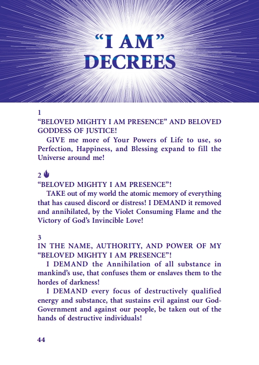 The "Voice of the I AM" monthly Magazine is the Outpouring of the Love, Light, and Illumination from the Beloved Ascended Masters for the enlightenment of all mankind-the Ascended Masters' Instruction on the Fiery Christ Truth of the "Beloved Mighty I AM Presence." The Ascended Masters' Instruction on the Great Laws of Life was first brought forth by the Ascended Master Saint Germain, through His Accredited Messengers, Mr and Mrs GW Ballard. In the early 1930s the Ballards established Saint Germain Foundation and Saint Germain Press, currently a worldwide organization with hundreds of "I AM" Temples and Sanctuaries throughout the world. The "I AM" Activity of Saint Germain Foundation presents this Original Ascended Master Instruction in its pure, unadulterated form, free from human interpretation, in The Voice of the "I AM" monthly Magazine, in the Books of the Saint Germain Series, and in other material released by Saint Germain Foundation and distributed through Saint Germain Press.