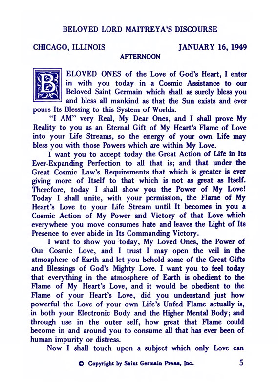 When I speak of the Flame of Love I have used so long as the Heart of My Miracle Love-just use the expression for awhile. Pour It into everything! Demand the outer self become Its Master Presence in everything you do, and just demand the Miracle Love of My Heart...About the Edition