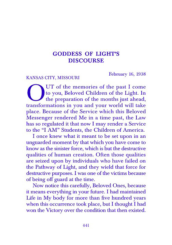 Out of the memories of the past I come to you, Beloved Children of the Light. In the preparation of the months just ahead, transformations in you and your world will take place. Because of the Service which this Beloved Messenger rendered Me in a time past, the Law has so regulated it that now I may render a Service to the "I AM" Students, the Children of America. ...About the Edition