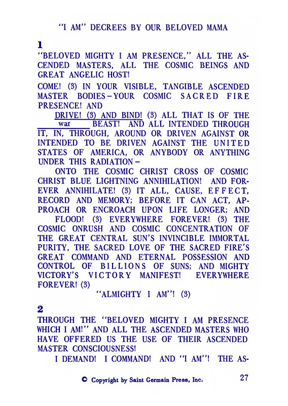 COME! (S) IN YOUR VISIBLE, TANGIBLE ASCENDED MASTER BODIES-YOUR COSMIC SACRED FIRE PRESENCE! AND DRIVE! (3) AND BIND! (3) ALL THAT IS OF THE WAR BEAST! AND ALL INTENDED THROUGH IT, IN, THROUGH, AROUND OR DRIVEN AGAINST OR INTENDED TO BE DRIVEN AGAINST THE UNITED STATES OF AMERICA...About the Edition