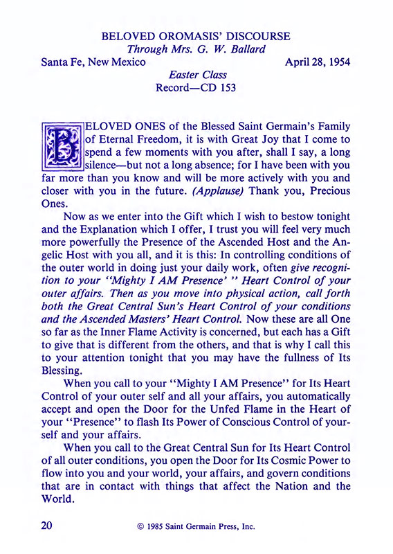 Discourse by Saint Germain; Afternoon Invocation; Transcendent Freedom; Mr Ballard's… More