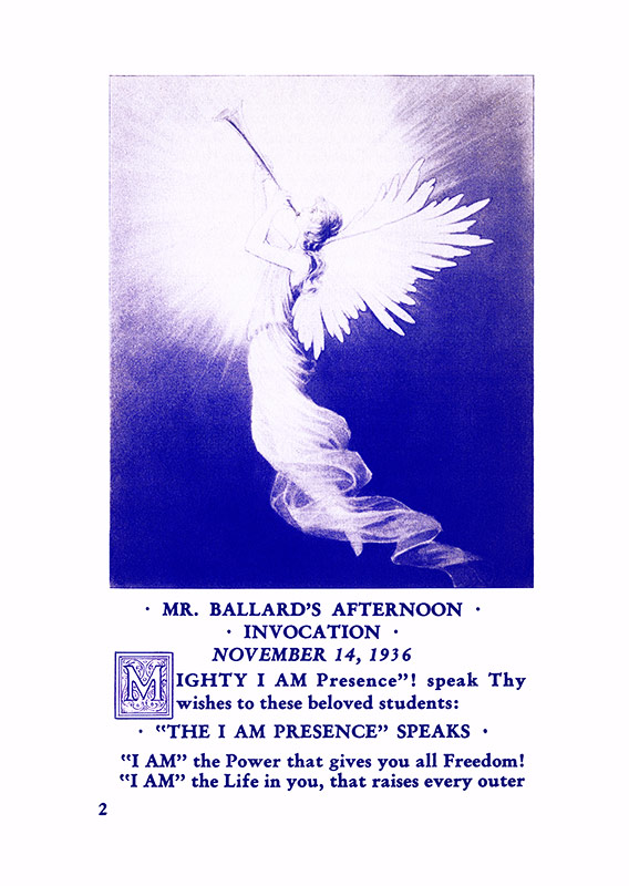 Poem - Ecstasy; Mr Ballard's Invocation; Discourse by Saint Germain; Discourse by Saint Germain; Discourse by Saint Germain; "I AM" Study Groups; Young America.