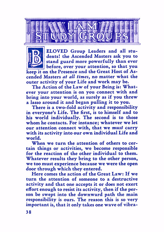 The "Voice of the I AM" monthly Magazine is the Outpouring of the Love, Light, and Illumination from the Beloved Ascended Masters for the enlightenment of all mankind-the Ascended Masters' Instruction on the Fiery Christ Truth of the "Beloved Mighty I AM Presence." The Ascended Masters' Instruction on the Great Laws of Life was first brought forth by the Ascended Master Saint Germain, through His Accredited Messengers, Mr and Mrs GW Ballard. In the early 1930s the Ballards established Saint Germain Foundation and Saint Germain Press, currently a worldwide organization with hundreds of "I AM" Temples and Sanctuaries throughout the world. The "I AM" Activity of Saint Germain Foundation presents this Original Ascended Master Instruction in its pure, unadulterated form, free from human interpretation, in The Voice of the "I AM" monthly Magazine, in the Books of the Saint Germain Series, and in other material released by Saint Germain Foundation and distributed through Saint Germain Press.