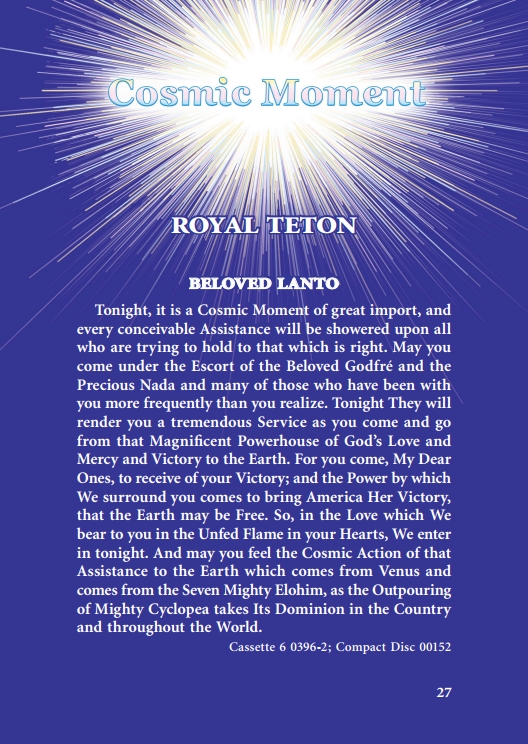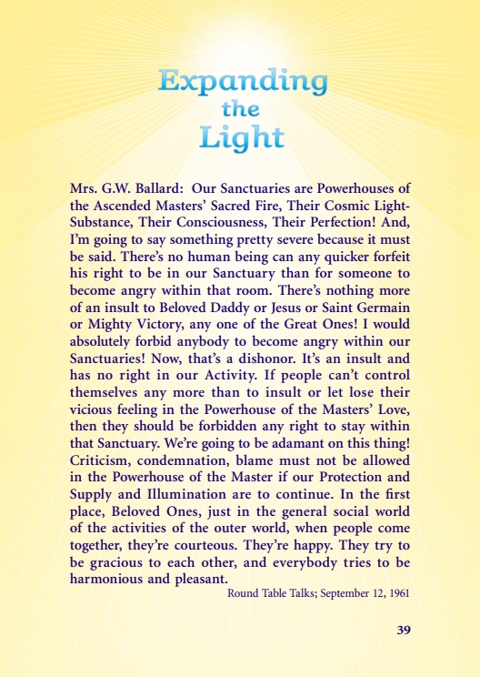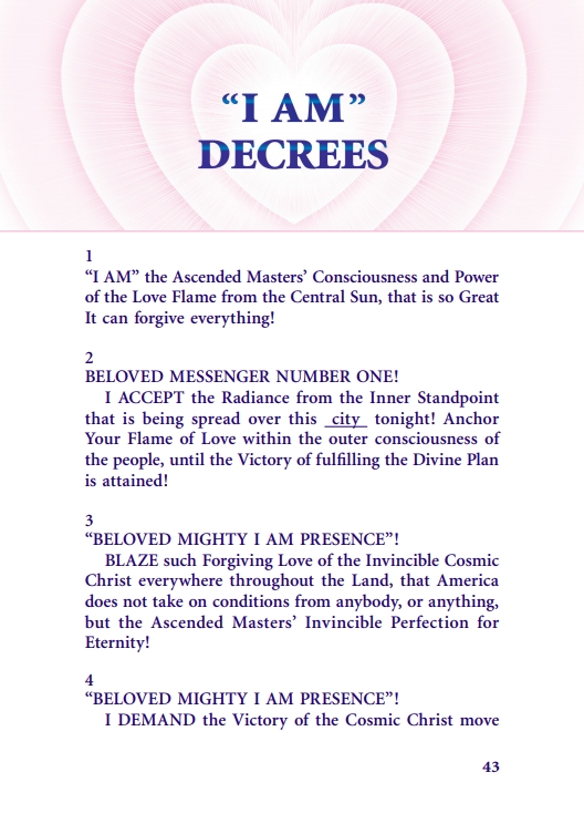 The "Voice of the I AM" monthly Magazine is the Outpouring of the Love, Light, and Illumination from the Beloved Ascended Masters for the enlightenment of all mankind-the Ascended Masters' Instruction on the Fiery Christ Truth of the "Beloved Mighty I AM Presence." The Ascended Masters' Instruction on the Great Laws of Life was first brought forth by the Ascended Master Saint Germain, through His Accredited Messengers, Mr and Mrs GW Ballard. In the early 1930s the Ballards established Saint Germain Foundation and Saint Germain Press, currently a worldwide organization with hundreds of "I AM" Temples and Sanctuaries throughout the world. The "I AM" Activity of Saint Germain Foundation presents this Original Ascended Master Instruction in its pure, unadulterated form, free from human interpretation, in The Voice of the "I AM" monthly Magazine, in the Books of the Saint Germain Series, and in other material released by Saint Germain Foundation and distributed through Saint Germain Press.