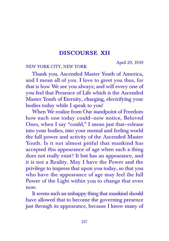 Volume 12 - The "I AM" Discourses, by Ascended Master Youth Bob. The twelfth Volume of the Saint Germain Series. This Series of Books represents the Original, Permanent, and Highest Source of the Ascended Masters' Instruction on the Great Laws of Life, as first brought forth by Saint Germain through His Messengers, Mr and Mrs Ballard. In the early 1930s the Ballards established Saint Germain Foundation and Saint Germain Press, which under Saint Germain's Guidance have expanded into a worldwide organization that offers mankind the True Understanding and Power of the Great Cosmic Creative Word, "I AM"! Hundreds of I AM Temples and Sanctuaries exist throughout the world, where these Teachings are applied in Decree Groups for the upliftment of mankind. The I AM Activity of Saint Germain Foundation strives to keep the Ascended Master Instruction found in these Books in Its pure, unadulterated form, free from any human interpretation, as It is a Gift from the Great Ascended Masters to bring Illumination and Perfection to mankind. Each Book and Discourse carries the definite Radiation and Consciousness of the Ascended Masters and points the Student to the attainment of the Ascension through their use of the Sacred Fire.The Books of the Saint Germain Series are available in many libraries, bookstores, or directly from www.SaintGermainPress.com.Associated Items